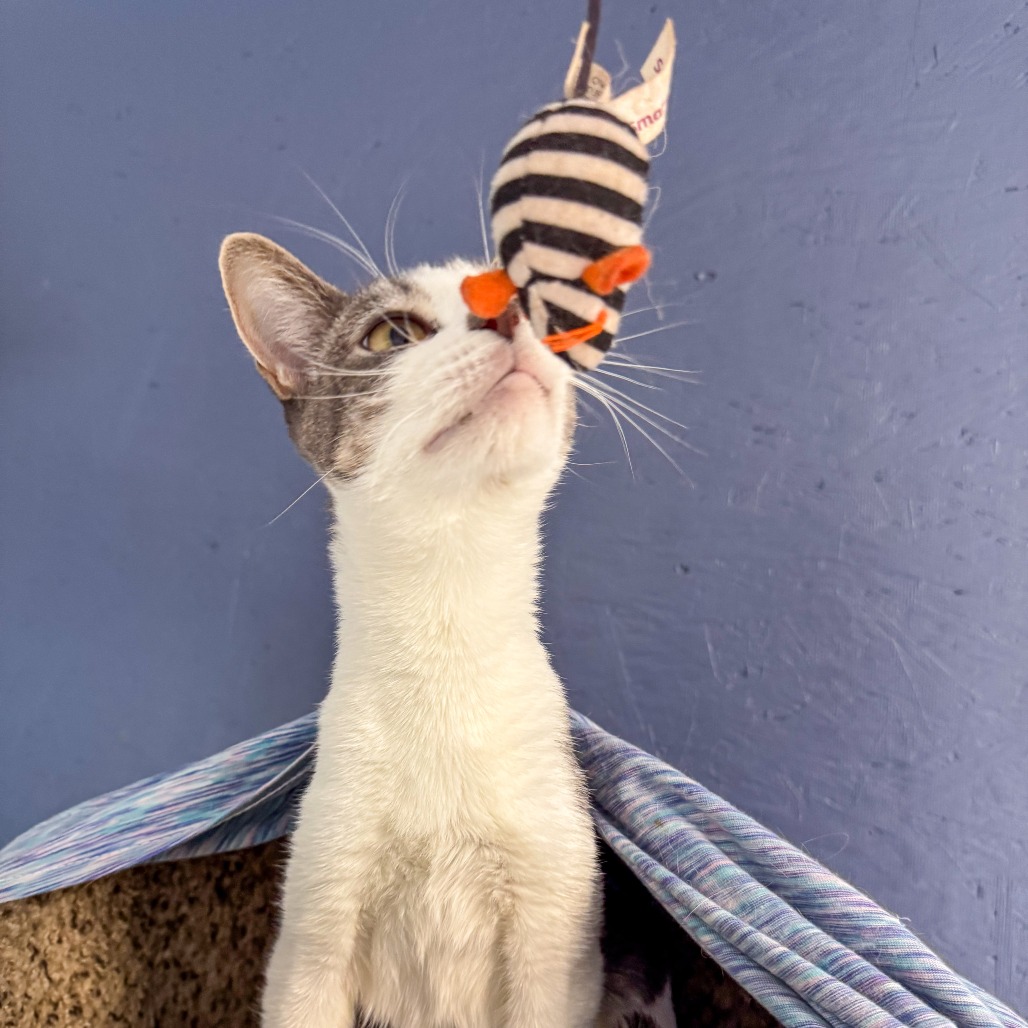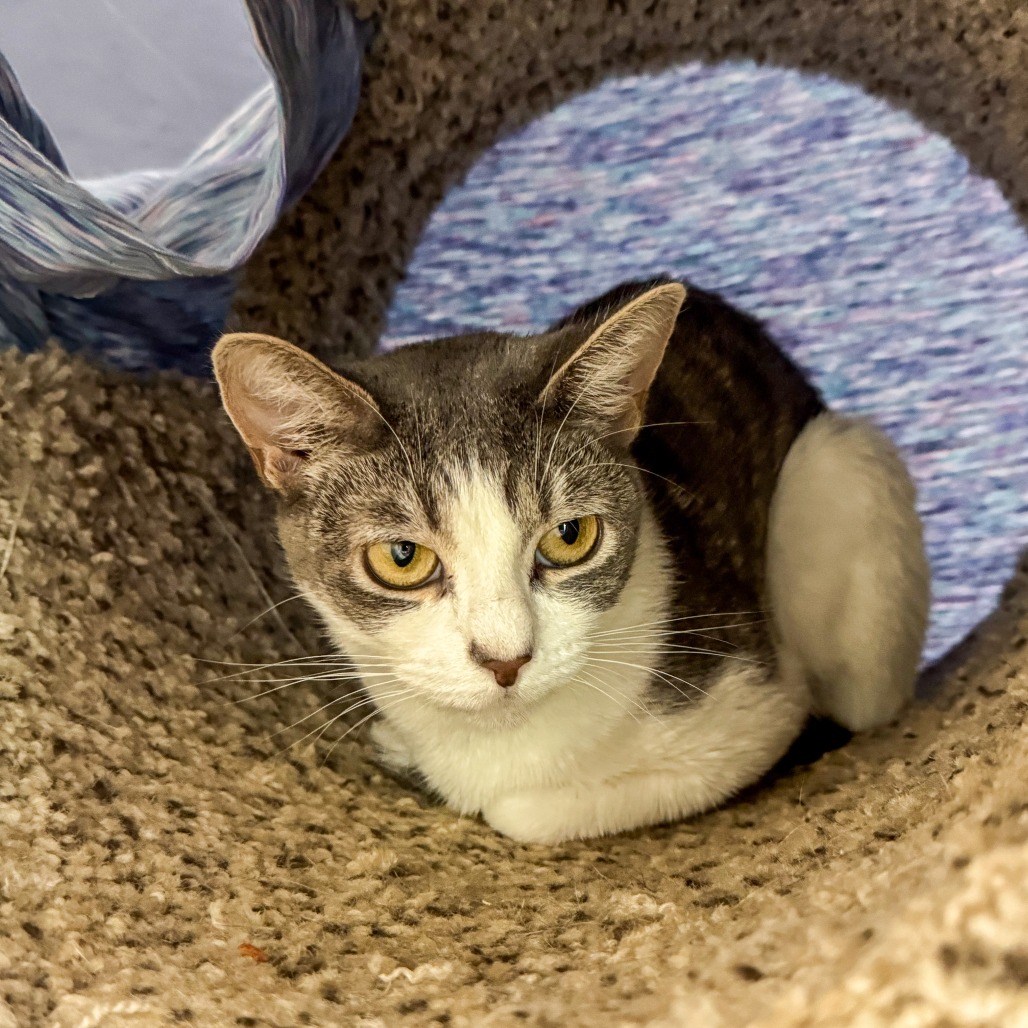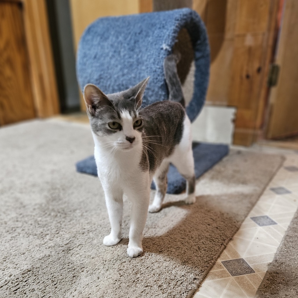 She has a strong love for headbutts and will let you know when she wants to share them!! Jolly Rancher loves having a space to relax and do her own thing, before she peaks around to say hello and share her affection! With her quiet curiosity and calm demeanor, Jolly Rancher is excited to find a new home!