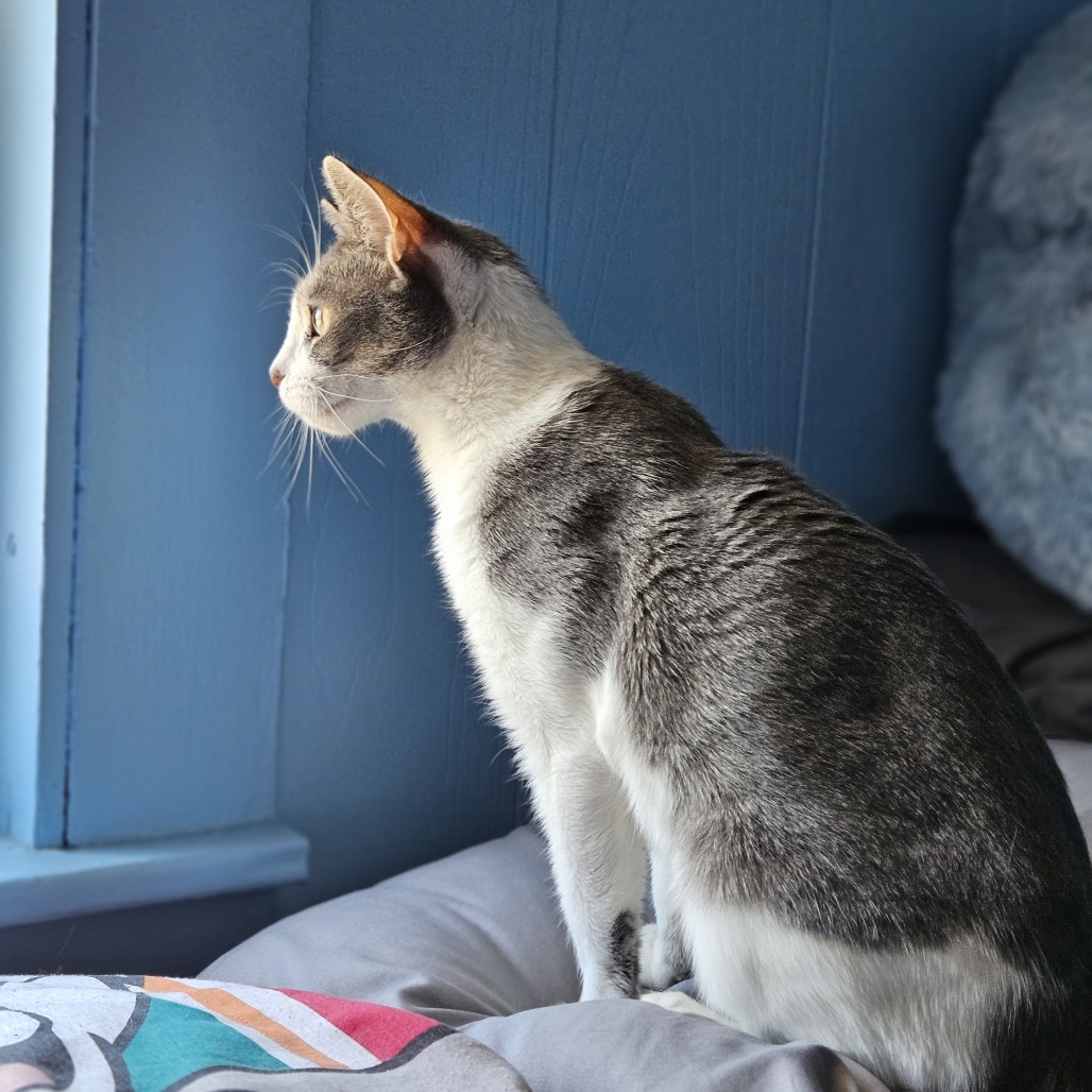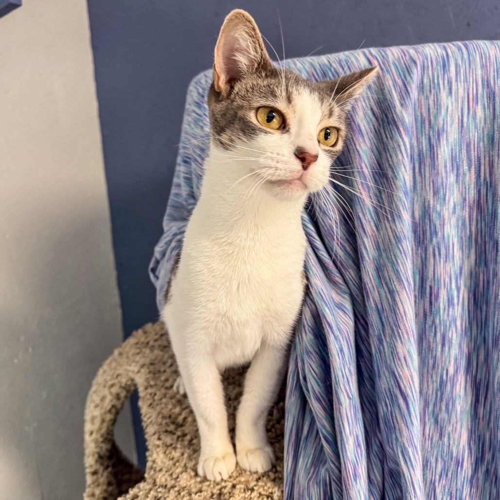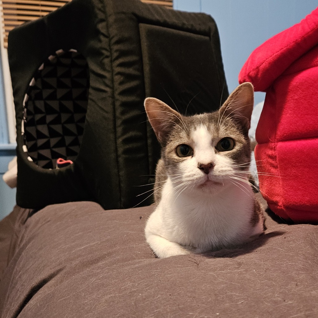 She has a strong love for headbutts and will let you know when she wants to share them!! Jolly Rancher loves having a space to relax and do her own thing, before she peaks around to say hello and share her affection! With her quiet curiosity and calm demeanor, Jolly Rancher is excited to find a new home!