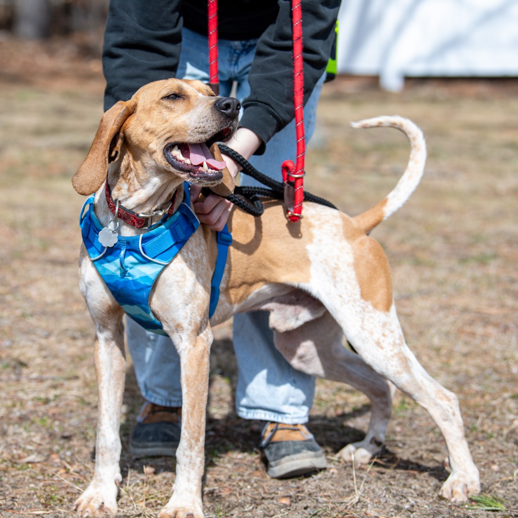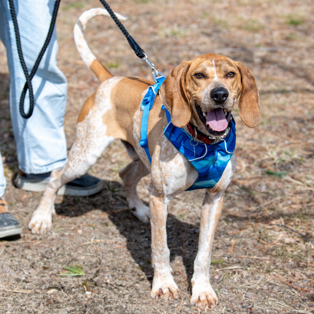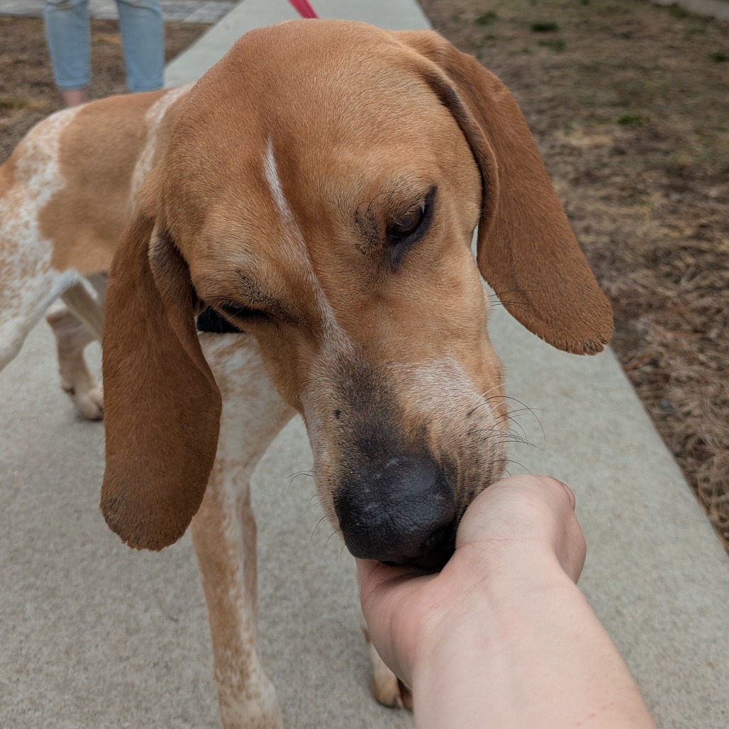 Nitro is a young Coonhound with a sweet and gentle nature. He enjoys staying active and using his nose to explore the world around him. He can be a little shy at first, but once he starts to feel comfortable, his affectionate and snuggly side really shines.