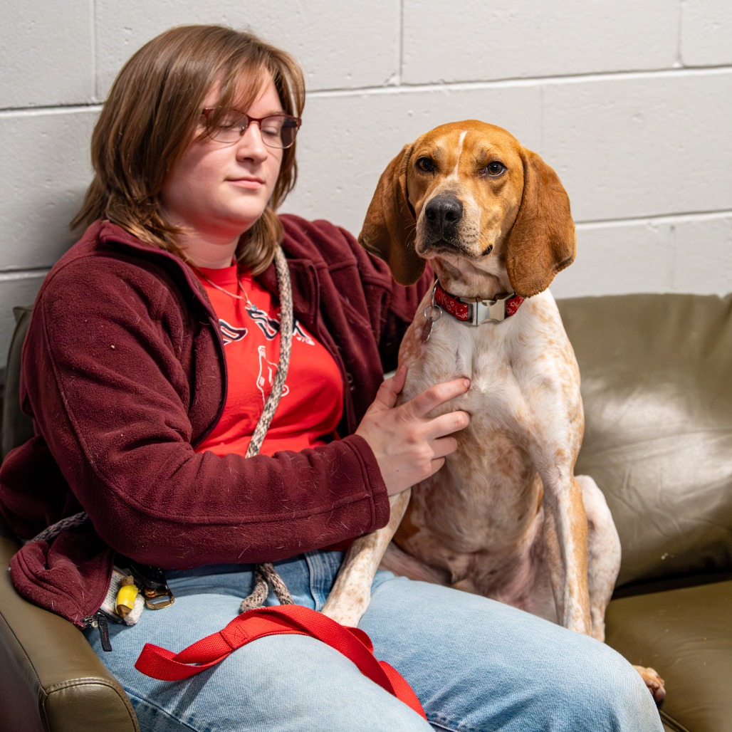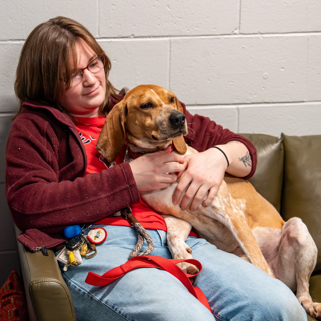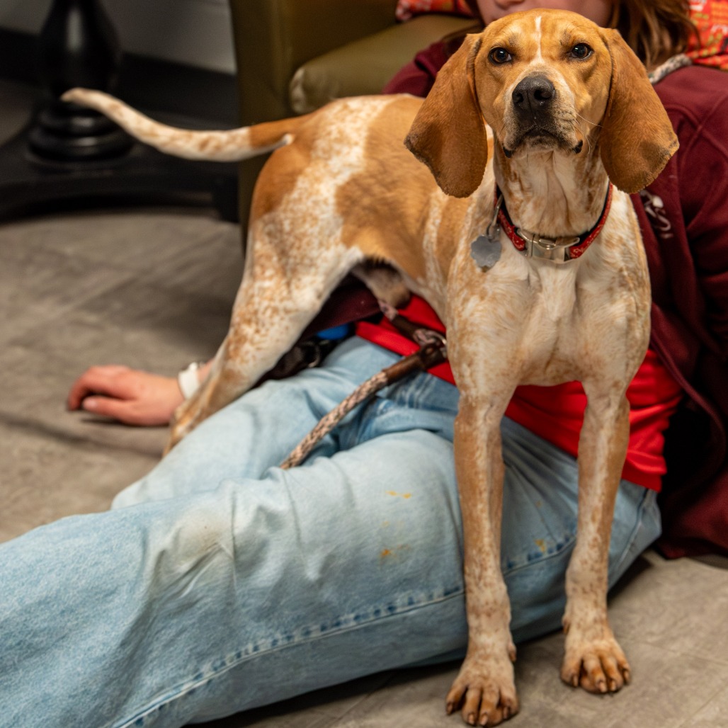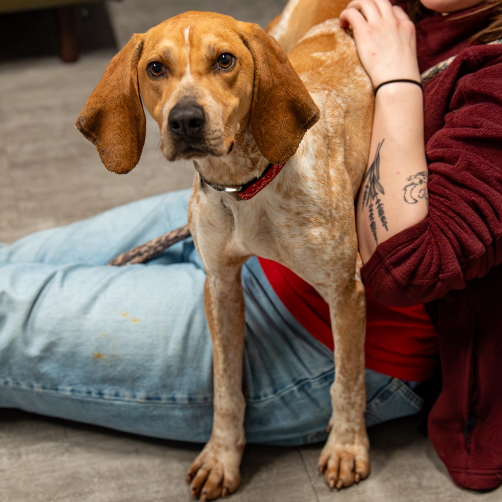 Nitro is a young Coonhound with a sweet and gentle nature. He enjoys staying active and using his nose to explore the world around him. He can be a little shy at first, but once he starts to feel comfortable, his affectionate and snuggly side really shines.