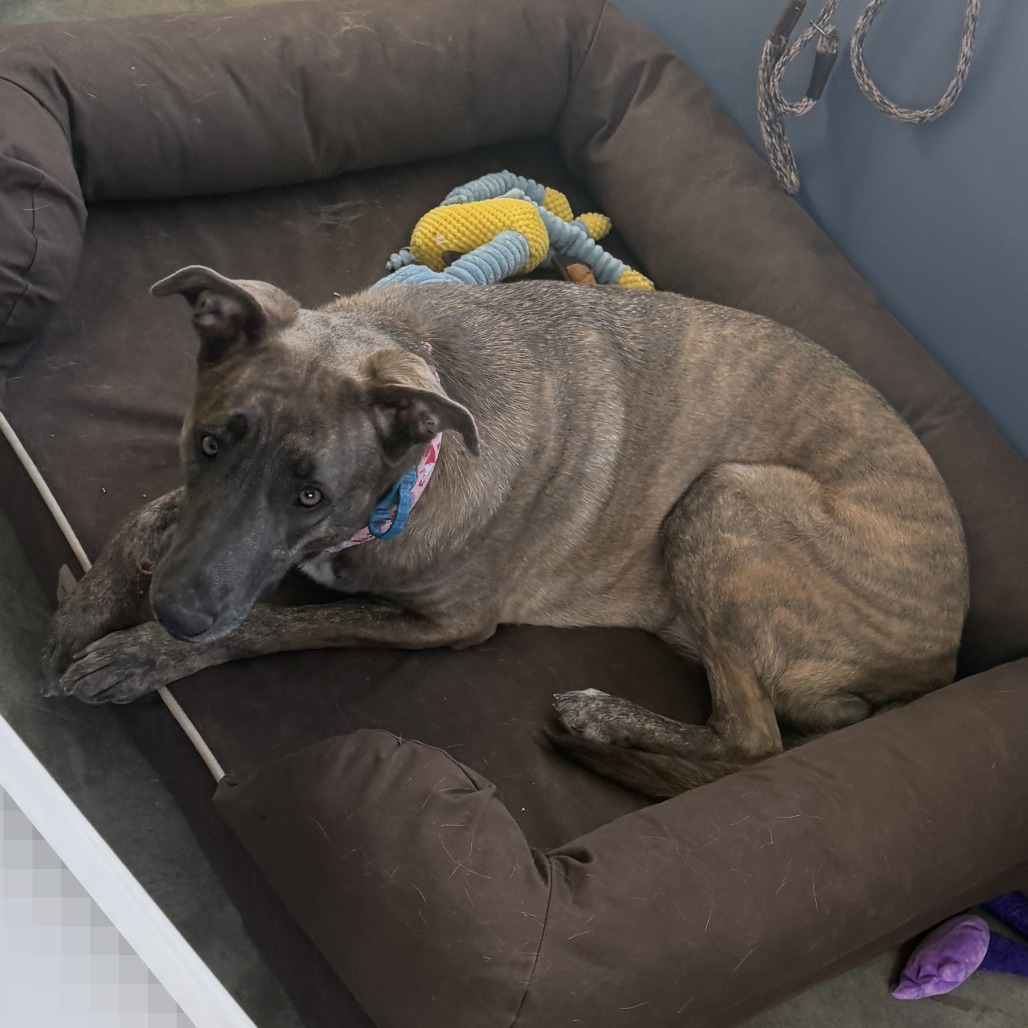 Xaria is very shy and reserved, especially when meeting new people and experiencing new environments. Her new people will want to be very patient with her and allow her to feel comfortable at her own pace. Having another dog at home might help her gain confidence. While it may take a little while, when she's feeling settled, she will blossom into an amazing canine companion with lots of love to give!