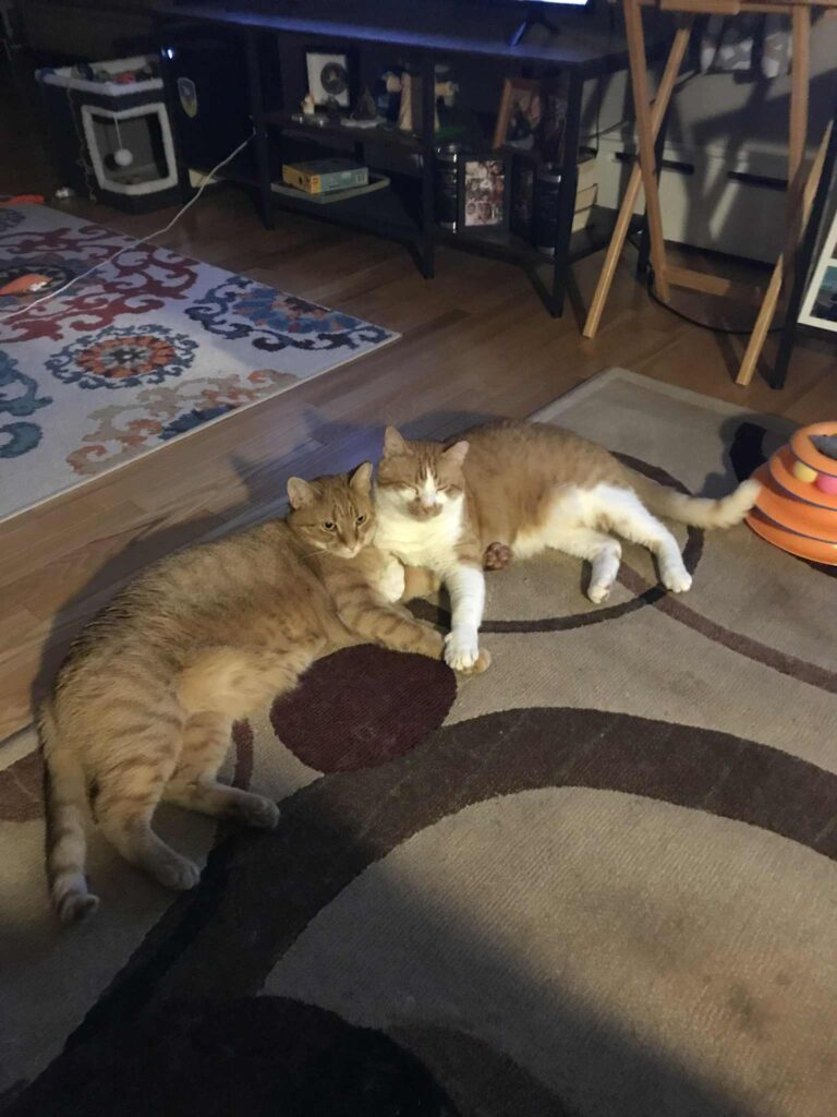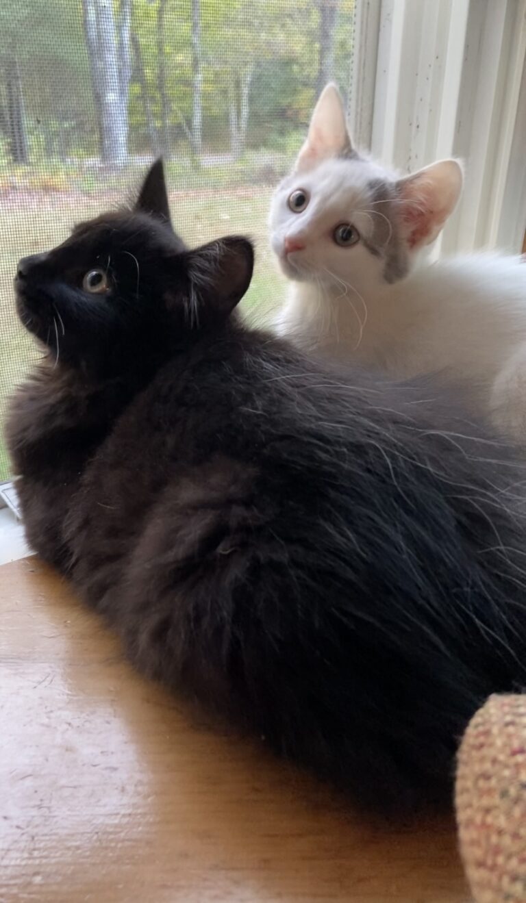 First we brought home Ozzie (black kitten) then he was so playful we decided to adopt him a brother, Leo. Both of these kittens were adopted about a week apart from Animal Welfare Society. They love each other so much…