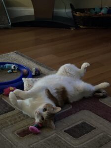 When we met Cheyenne, she was timid and didn’t allow us to get close. But. we still wanted to try the fostering plan. After a few weeks, she learned to trust us, gaining weight and even played with her new sister Skylar. We finalized the adoption on March 13th as our newest member to the family.