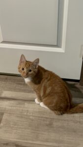 Miss came to live with us almost 2 years ago. She was a bit shy at first but her friendliness persevered. When she was with us for about six weeks she suddenly became very ill with pancreatitis. Fortunately, we were able to get her good care and is now on a special diet and does quite well. She greets anyone who comes and loves to sit on Dad’s chest (mine as well, but his more often). We are so glad we found her and think she is glad too!